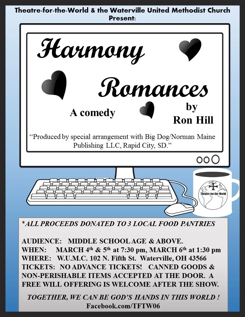 Thank you so much for supporting our recent show, "Harmony Romances". We are extremely grateful for all the volunteers that helped us pull things together. Another successful show, with record numbers of patrons on Sunday and a record number of grocery donations. God is good! At the time of this printing, we do not have a final number concerning our monetary donations. TFTW is currently the mission focus for the month of March; however, we are certain many families will benefit from your support. We will update everyone in the near future with the final results as well as provide some information concerning our Christmas musical. We are very excited about the show, but more importantly, we are anxious to see what God can do with our efforts to help people around the world. Please keep TFTW in your prayers. Thank you and God bless!
